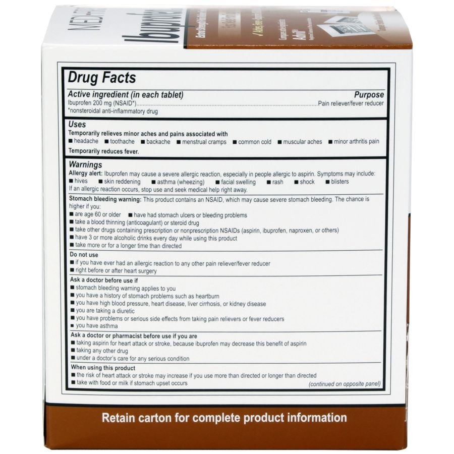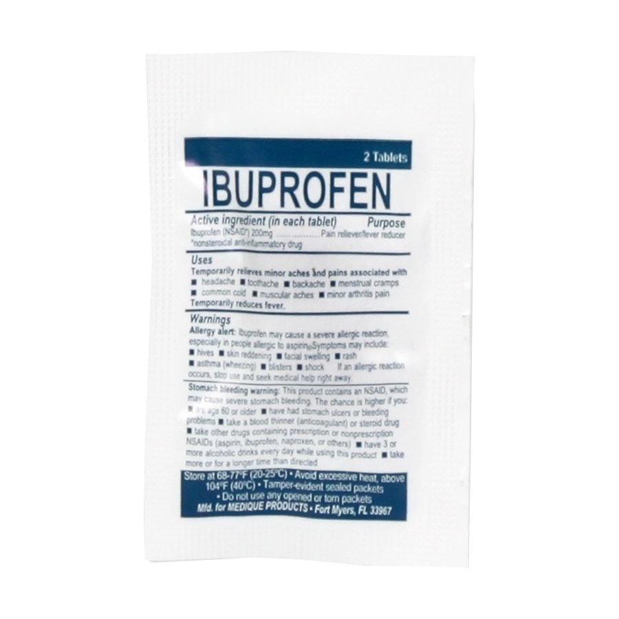 Great deal on portable pain- and cold-relief tablets. Use for the temporary relief of aches, pains, headaches, pains associated with the common cold, toothache, muscular aches, backache, menstrual cramps, and arthritis, and for the reduction of fever. These ibuprofen packets are great to carry in your purse, wallet, survival (first aid) kit, glove box, or even your pocket. Active Ingredient: Ibuprofen 200 mg.
